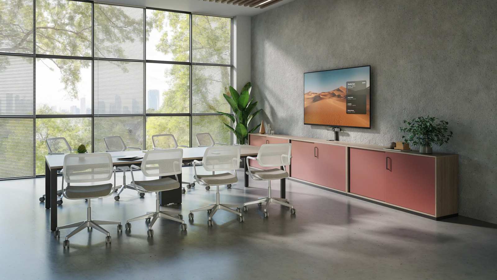 FrameFour Meeting Tables provide flexible spaces designed to support the flow between individual focus and collaborative work. Whether in formal conference rooms, project spaces, or creative team zones, these tables adapt to team needs, promoting information sharing, brainstorming, and quick reconfiguration. Full-height whiteboards and integrated tools enhance productivity and collaboration.